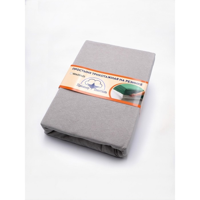 Трикотажная простыня на резинке 160х200х20см серый кулирка, 125г/м, хл100%