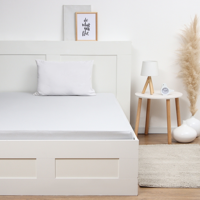 Трикотажная простыня на резинке 90х200х20см, св серый, кулирка 120г/м, хл100%