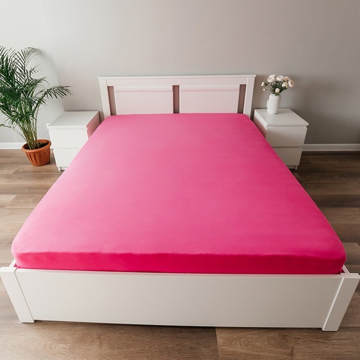 Трикотажная простыня на резинке 90х200х25см, фуксия кулирка, 120г/м хл100%