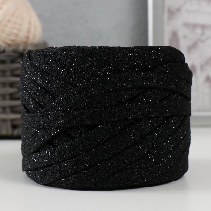 Трикотажная пряжа "Риббон" с люрексом 85м/170±5 гр (Черный, люрекс: Черный)