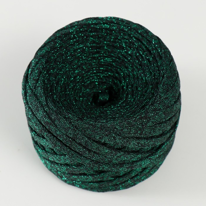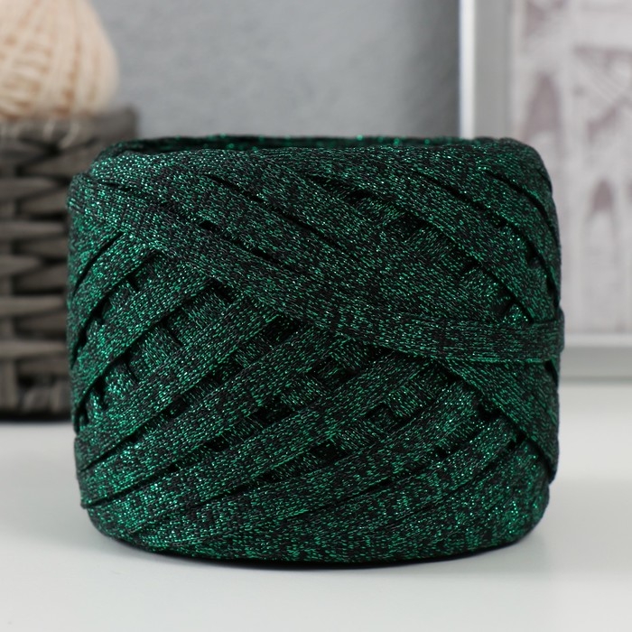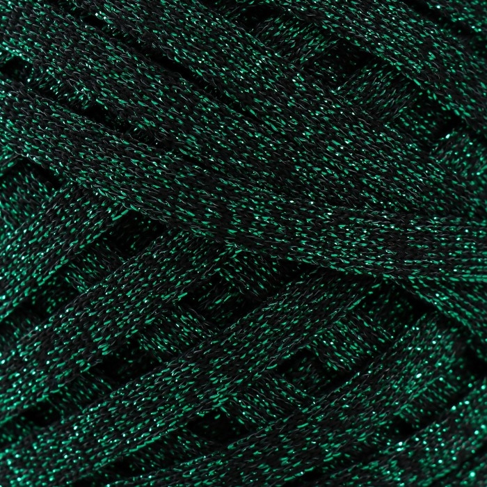 Трикотажная пряжа "Риббон" с люрексом 85м/170±5 гр (Черный, люрекс: Зеленый)