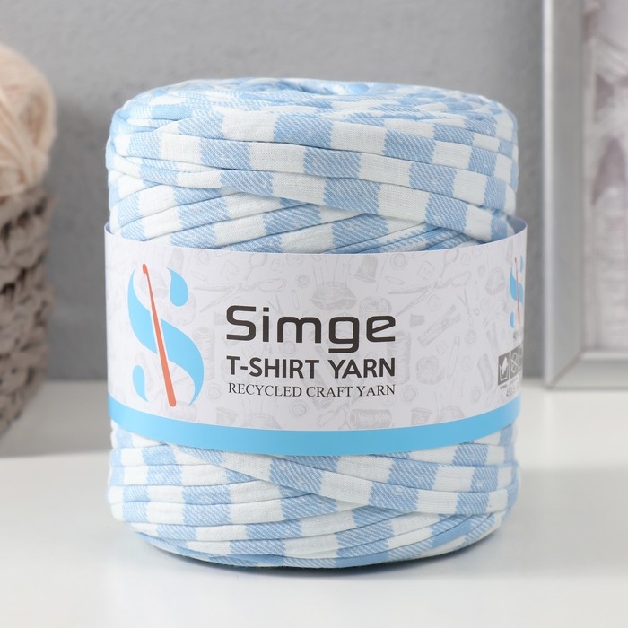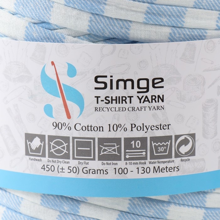 Трикотажная пряжа вторичная 90% хлопок,10% п/э, 100м/450±50 гр (полосатик бело-голубой)