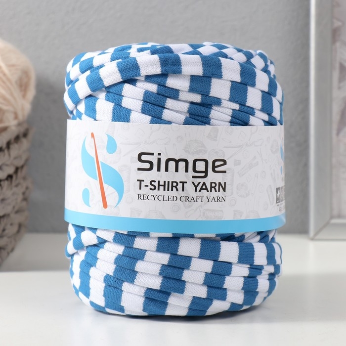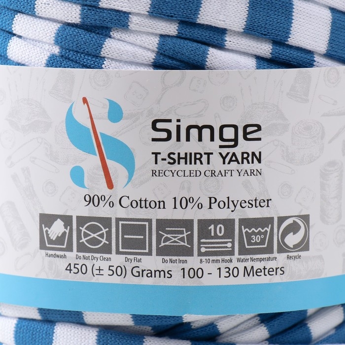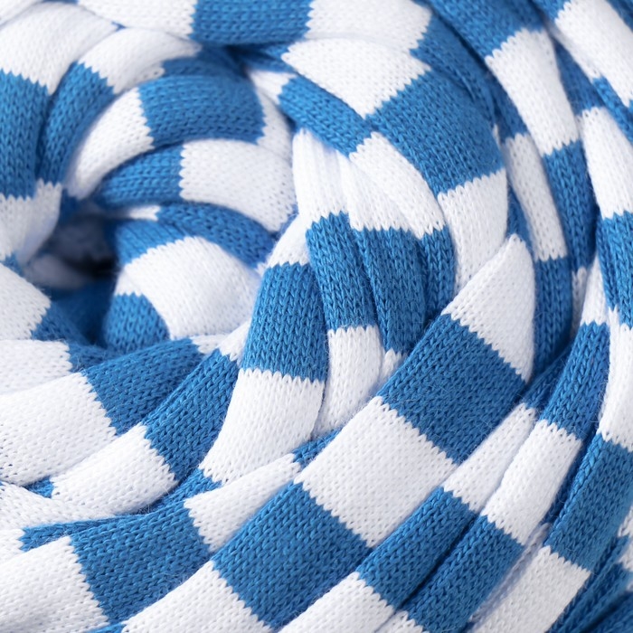 Трикотажная пряжа вторичная 90% хлопок,10% п/э, 100м/450±50 гр (полосатик бело-синий)