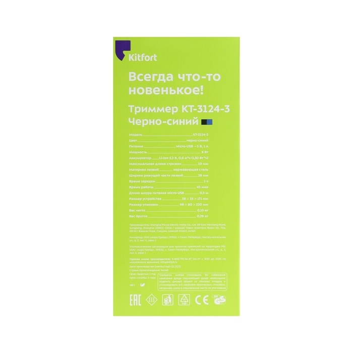 Триммер для волос Kitfort KT-3124-3, для бороды/усов, от АКБ, чёрно-синий