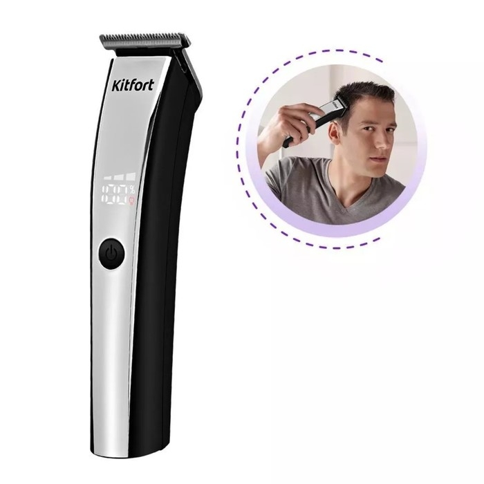 Триммер для волос Kitfort КТ-3131, 4 насадки, АКБ, серебристо-чёрная
