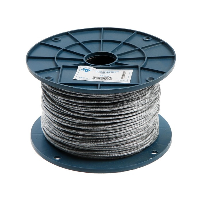 Трос для растяжки DIN 3055, в оплетке ПВХ, d=2/3 мм, в катушке 200 м