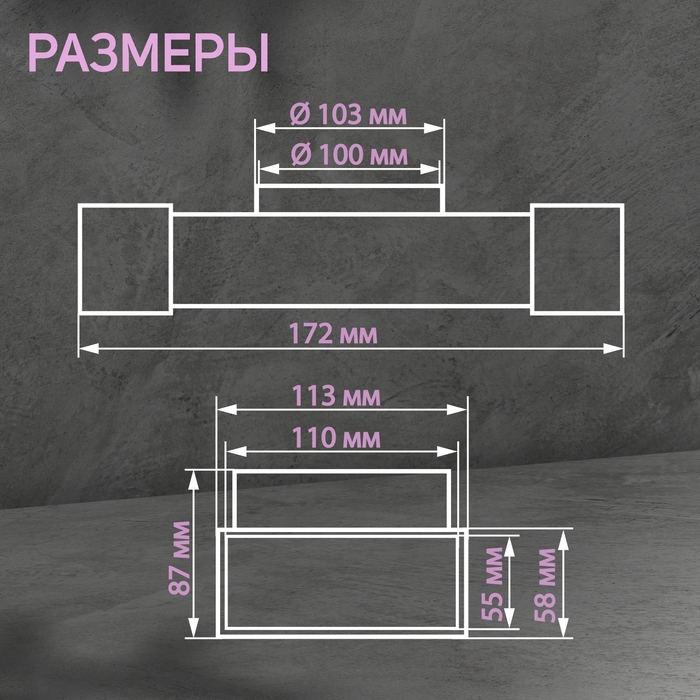 Тройник ZEIN,прямоугольный,55 х 110 мм,вентиляционный,с переходом на круглый канал d=100 мм