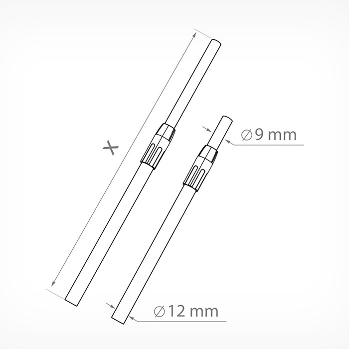 Алюминиевая телескопическая трубка. Длина трубки регулируется 55-97см. Нижний Ø12 мм. Верхний Ø9 мм (возможна установка переходника на Ø10 мм).
