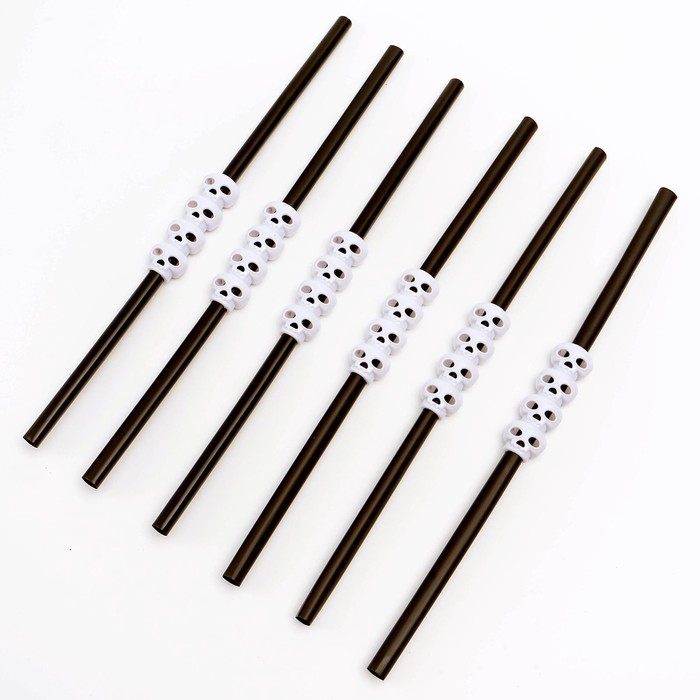 Трубочки для коктейля «Череп», цвет чёрный, набор 6 шт.