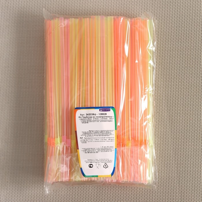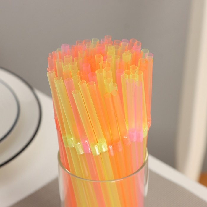 Трубочки одноразовые для напитков, 21 см, d=5 мм, 100 шт, с гофрой, цвет микс
