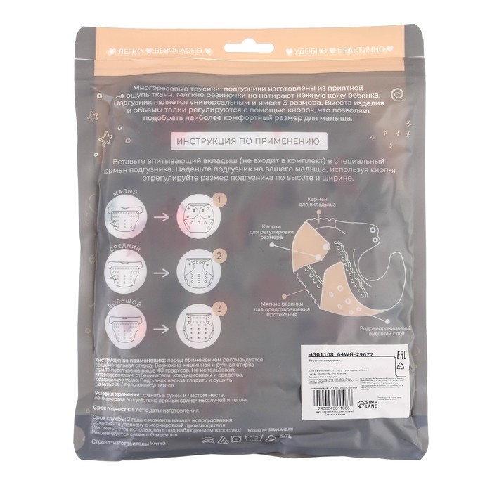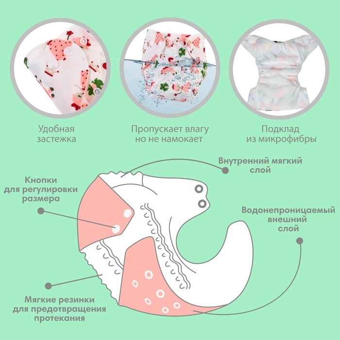 • Подгузник имеет удобный кармашек для вкладыша;