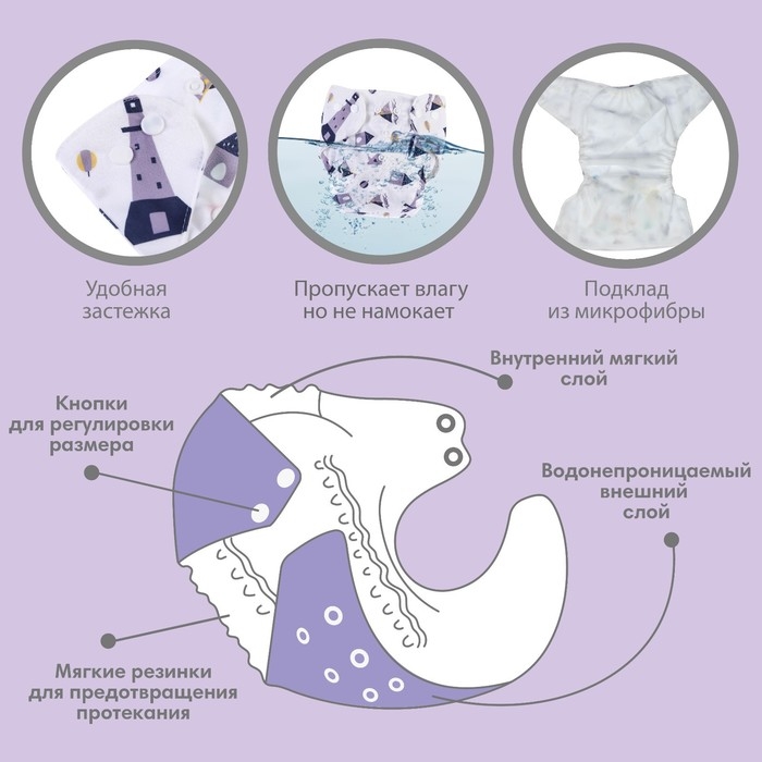 • Подгузник имеет удобный кармашек для вкладыша;