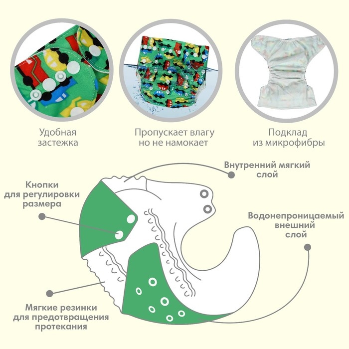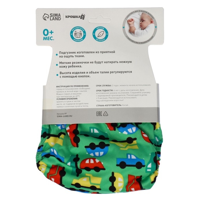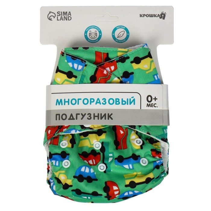 Трусики-подгузник, многоразовый «Машинки», цвет зеленый, Крошка Я