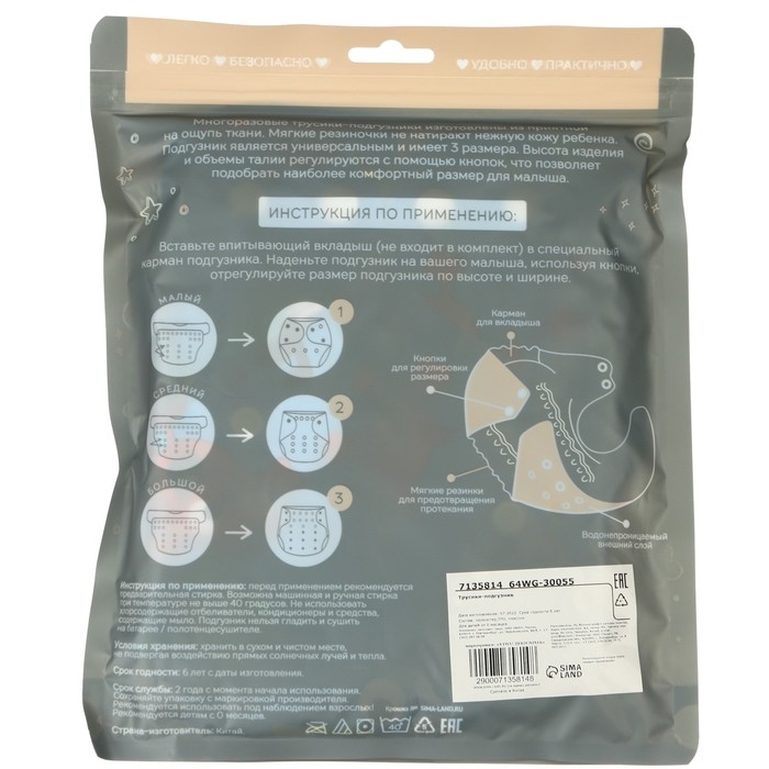 • Подгузник имеет удобный кармашек для вкладыша;