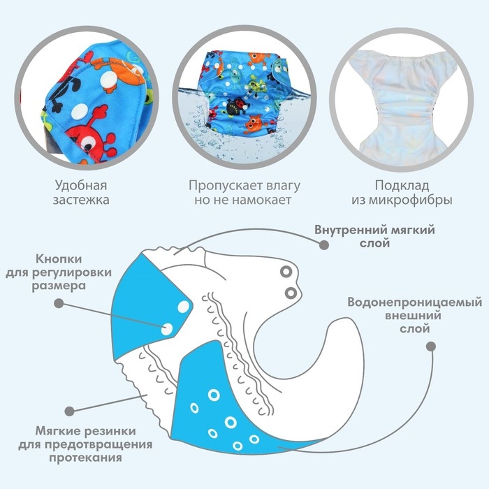 Трусики-подгузник, многоразовый, «Монстрики», Крошка Я