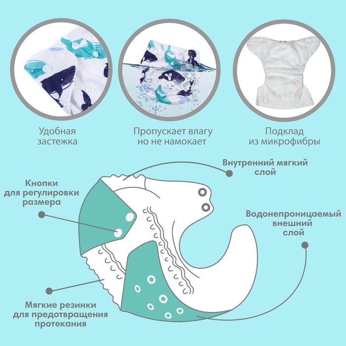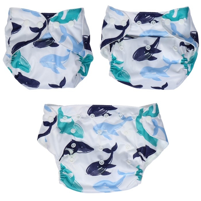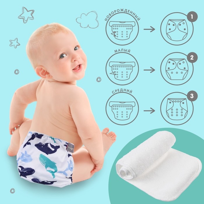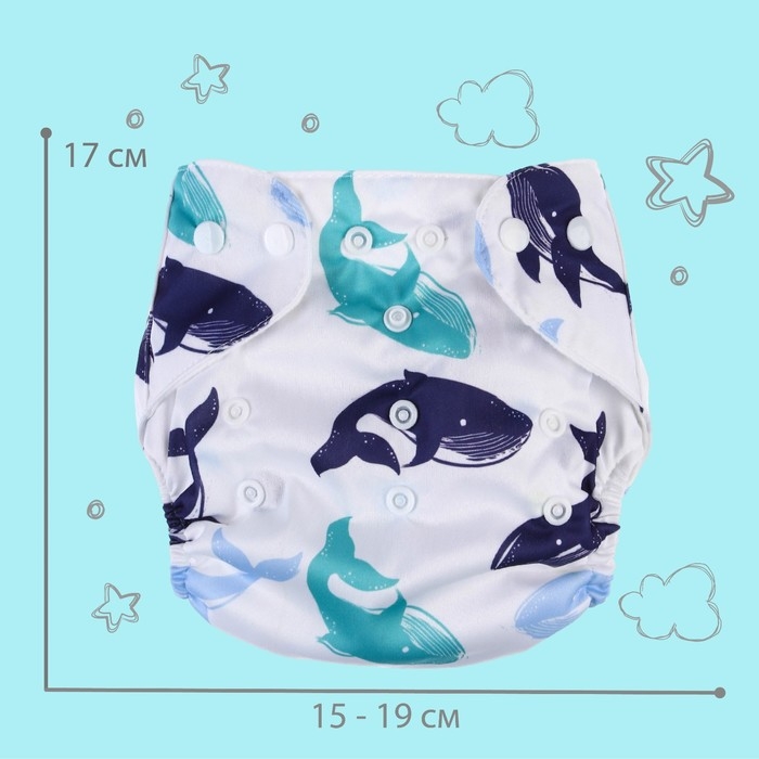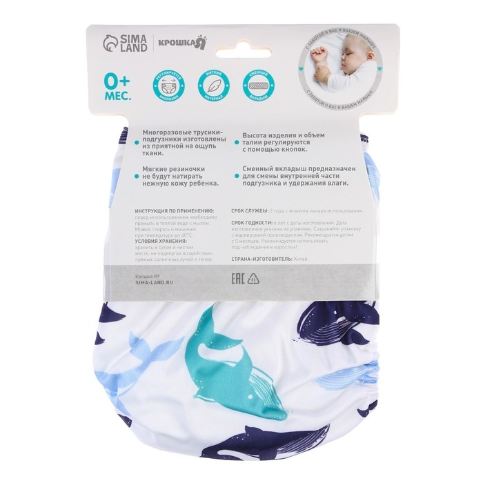 Трусики-подгузник, многоразовый, с 3-х слойным вкладышем «Киты», Крошка Я