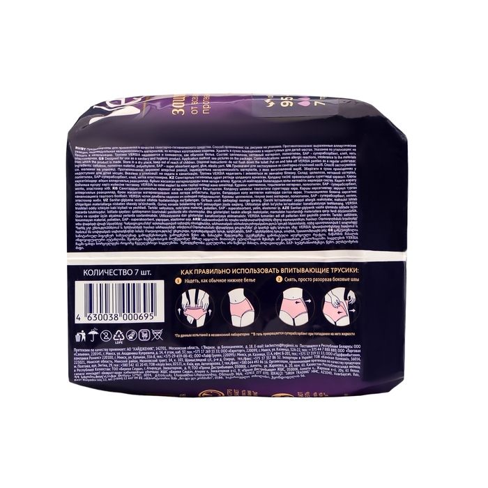 Жидкость в гель. Использовать трусики можно как при симптомах недержания, так и для критических дней. Трусики выполнены из очень мягких материалов как внутри, так и снаружи и максимально незаметны под одеждой. Мягкие бортики предотвращают протекания и дарят уверенность. Все трусики упакованы в индивидуальный кармашек, что позволяет их носить с собой.