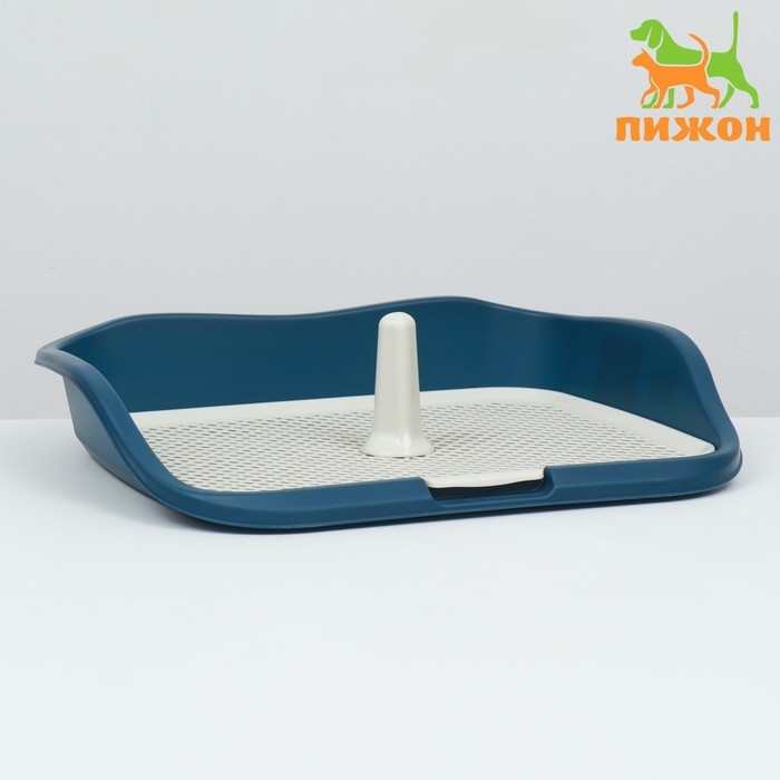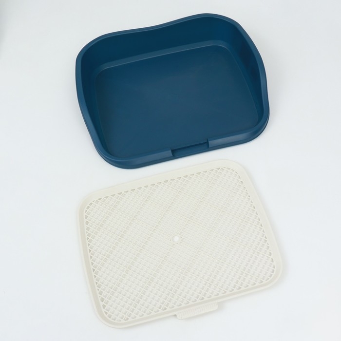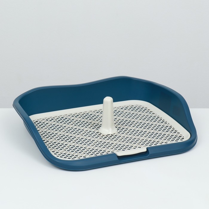Туалет для собак 46,5 х 35,5 х 5,5 см, со съёмным бортом, решеткой и столбиком, голубой