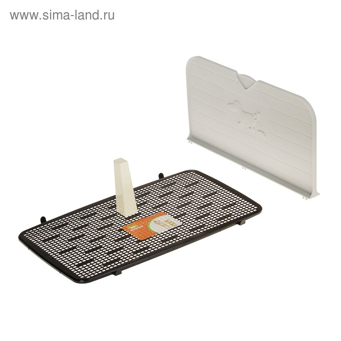 Туалет для собак 67 х 46 х 8 см, со стенкой, съемной решеткой и столбиком, черный