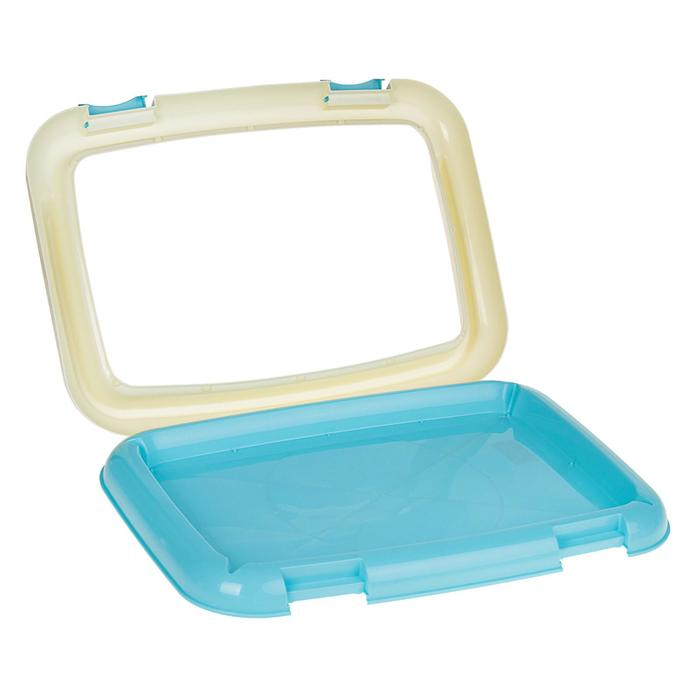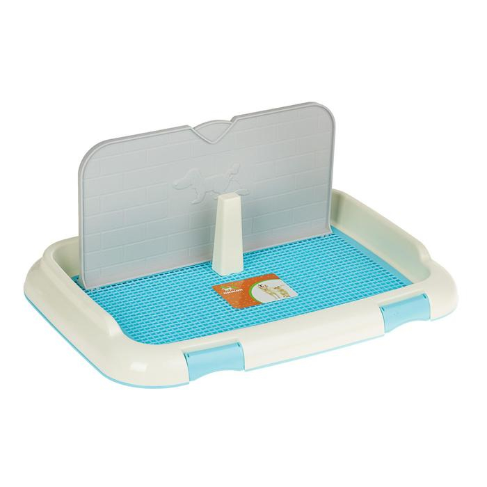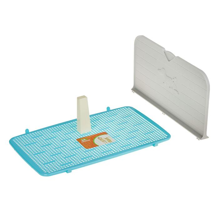 Туалет для собак 67 х 46 х 8 см, со стенкой, съемной решеткой и столбиком, голубой