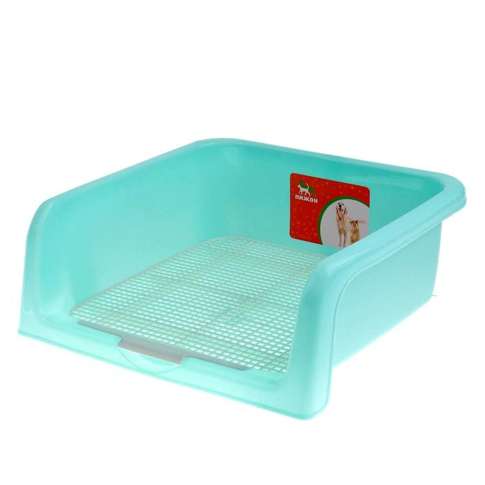 Туалет для собак 46,5 х 35,5 х 5,5 см, со съёмным бортом, решеткой и столбиком, голубой