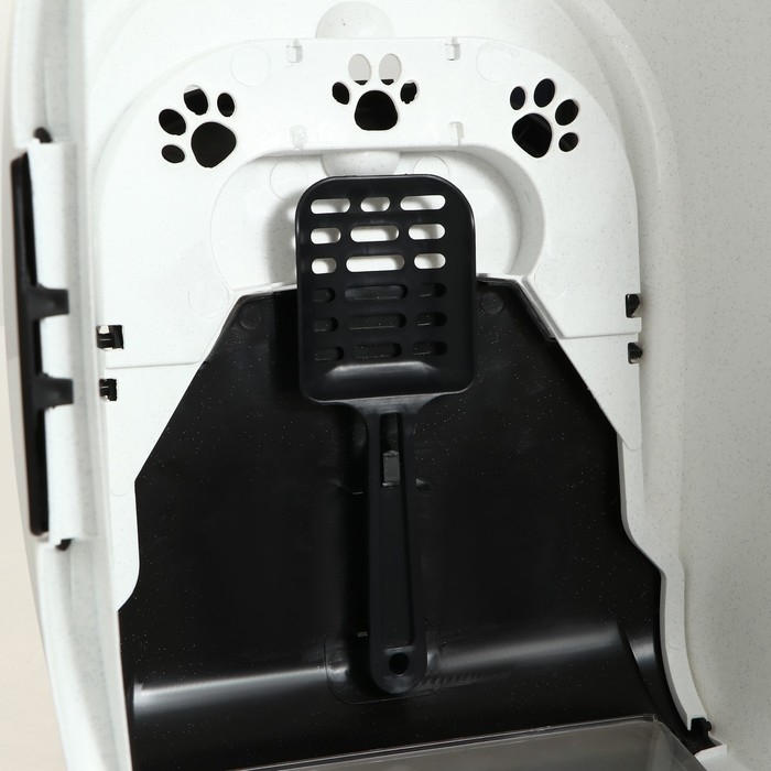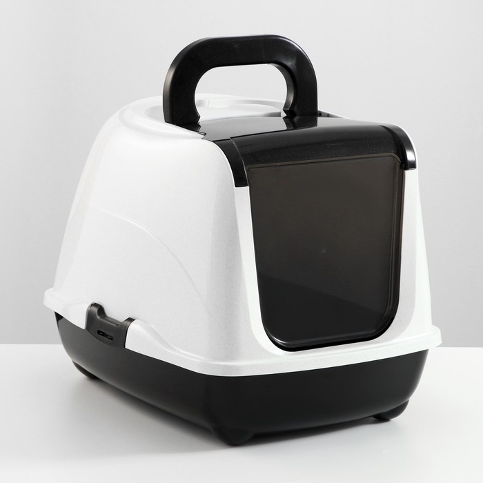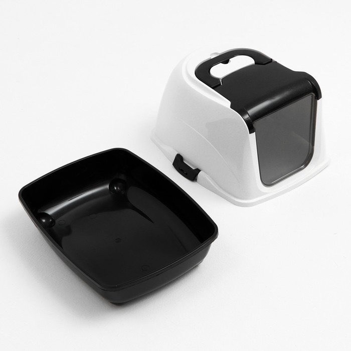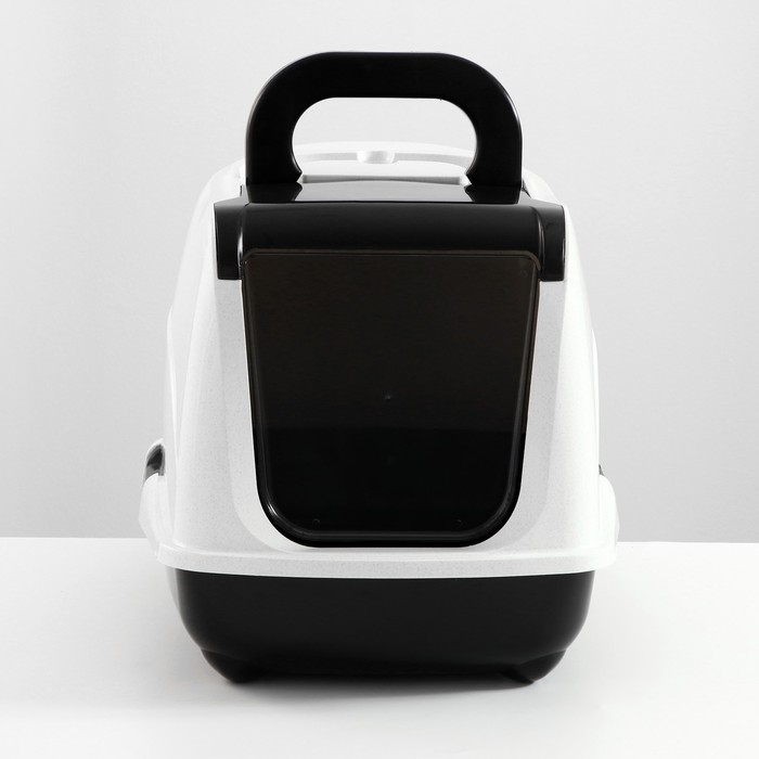 Туалет-домик для кошек закрытый с дверцей 50*38*37 см, черно-белый