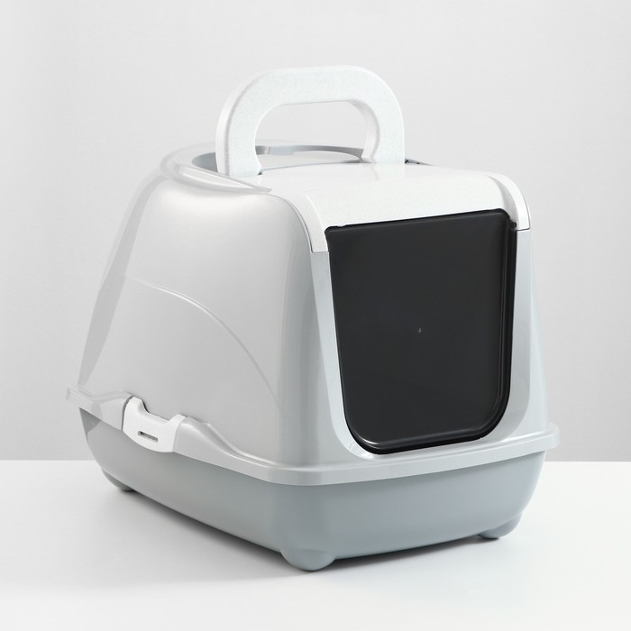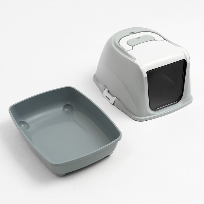 Туалет-домик для кошек закрытый с дверцей 50*38*37 см, серый