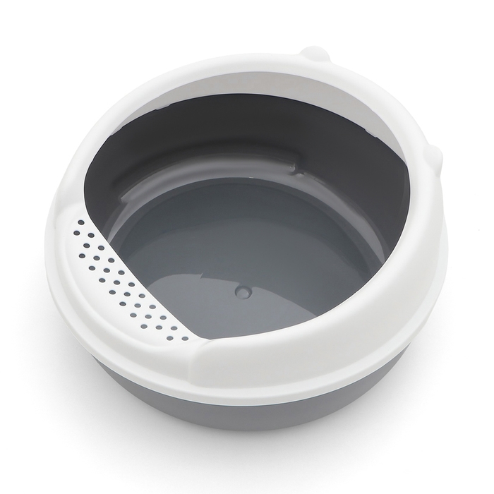Туалет выполнен из прочного и легкого пластика, что гарантирует его долговечность и простоту в уходе. Серый цвет придаёт изделию стильный и современный вид, а удобные бортики предотвращают разливы и обеспечивают максимальную защиту вашего пола.
