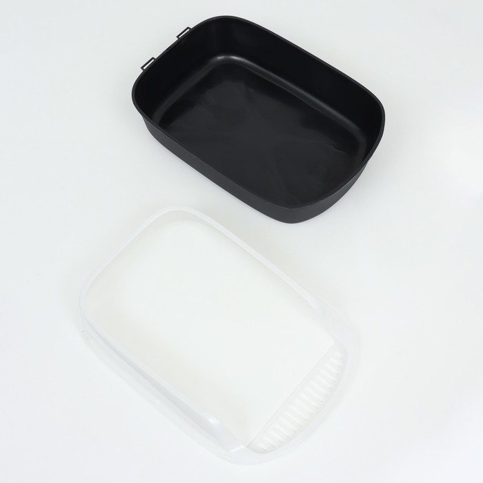 - Эргономичный дизайн: борта оптимальной высоты предотвращают разлет наполнителя, а гладкие поверхности легко очищаются.