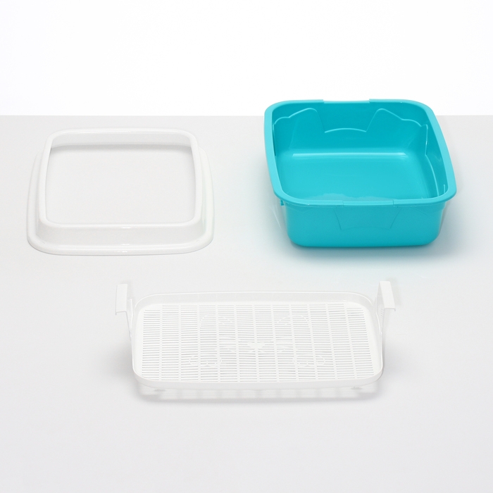 Представляем универсальное решение для вашего питомца — туалет с бортом и сеткой в элегантных серо-бирюзовых тонах. Этот лоток разработан с учетом всех потребностей вашей кошки, обеспечивая комфорт и чистоту.