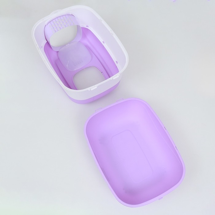 Превратите уход за своим питомцем в удовольствие с закрытым туалетом-домиком от торговой марки Пижон. Этот стильный и практичный туалет, выполненный в нежном сиреневом цвете, станет отличным дополнением к вашему интерьеру, обеспечивая при этом комфорт и чистоту для вашего питомца.