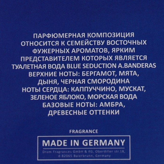 Аромат создан по мотивам Blue Seduction (ANTONIO BANDERAS).