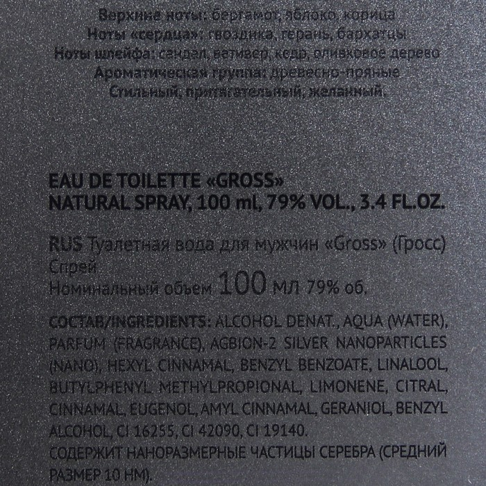 Туалетная вода мужская Gross, 100 мл