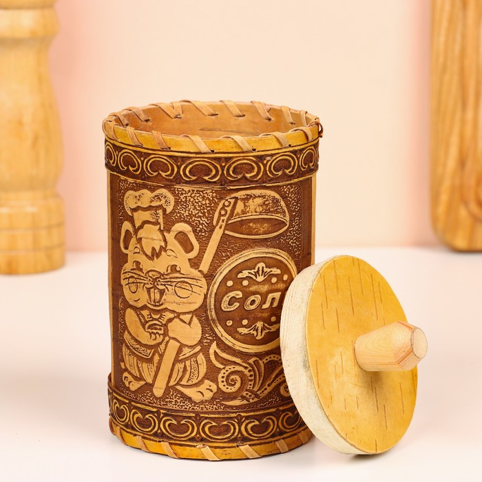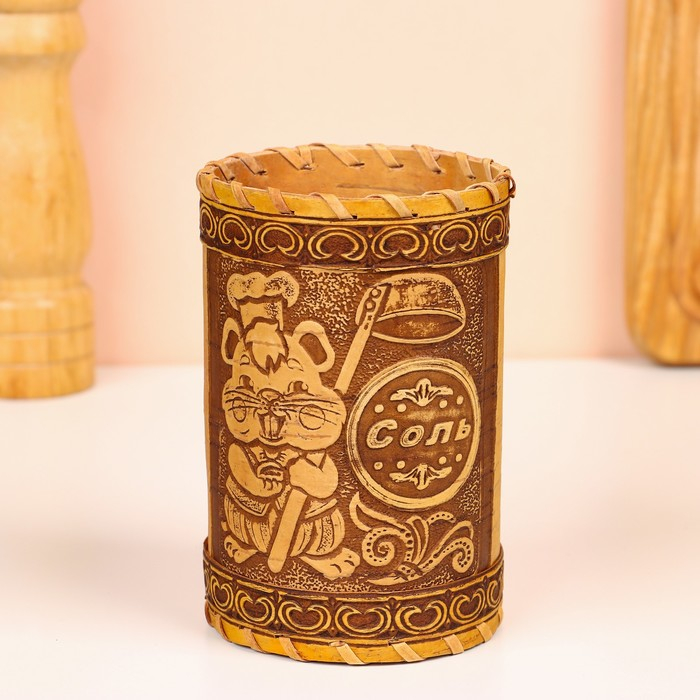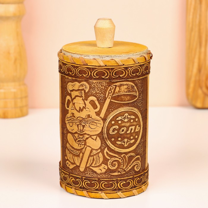 Туес для специй «Хомяк», соль, 8х8х14 см, береста