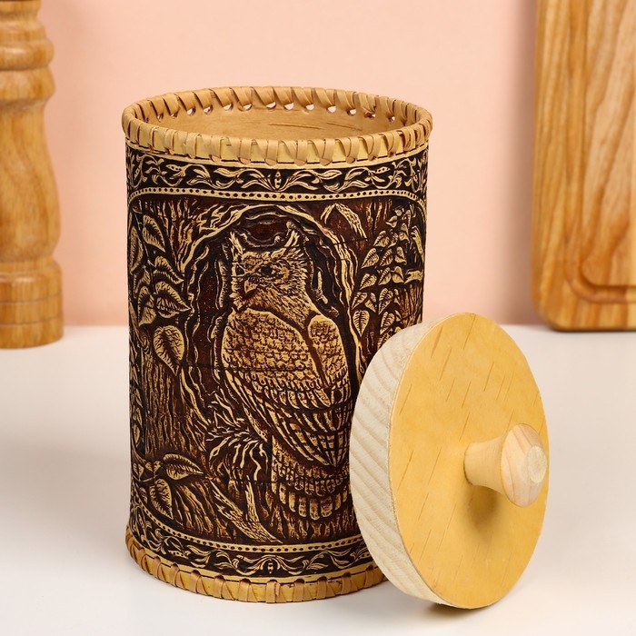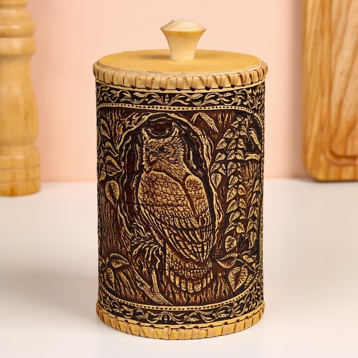 Туес "Филин", 10х10х17см, береста