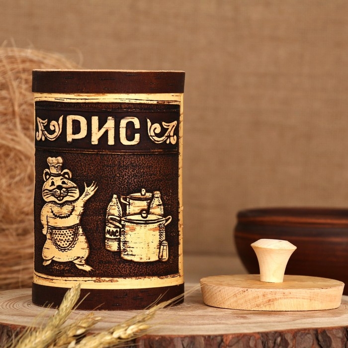 Туес "Хомка" для риса, 18 см, d=10 см, 1 л, береста