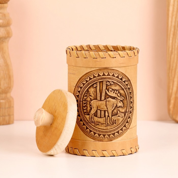 Туес "Лось", 8 х 8 х 14 см, береста
