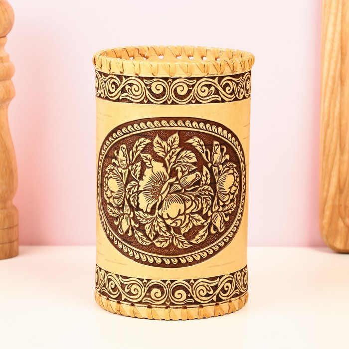 Туес "Пионы", 10,5х20 см, береста