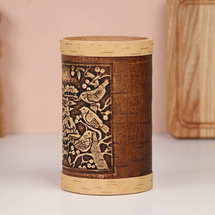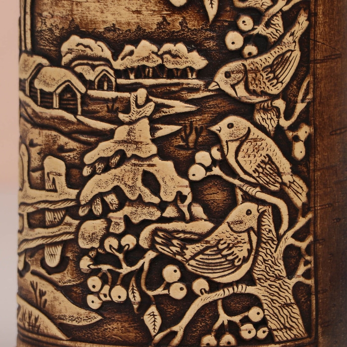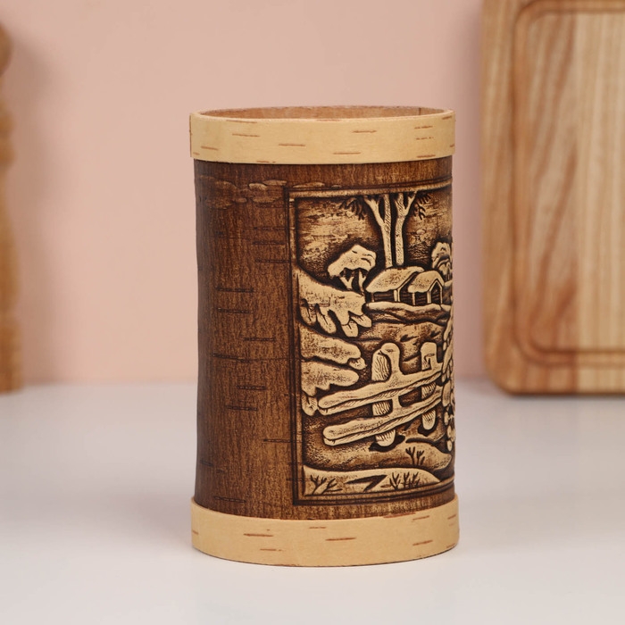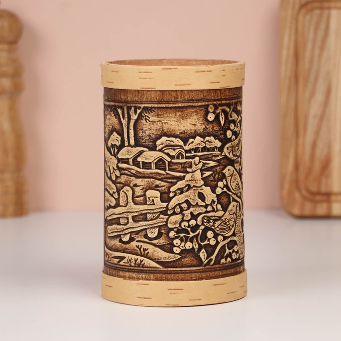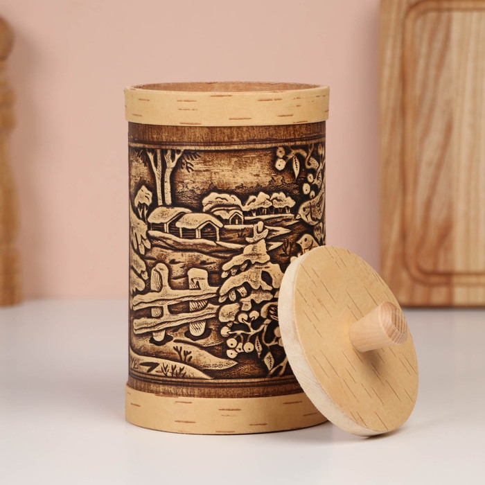 Туес "Зимняя деревня", 9,5х10,5 см, 1 л, береста
