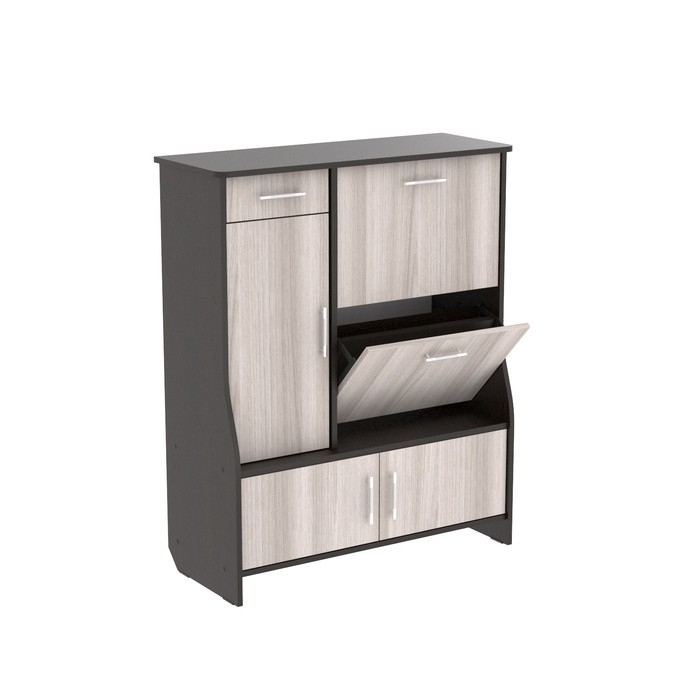 Обувница 3 отделения с дверью, 1060х280х960, Ясень шимо светлый/темный