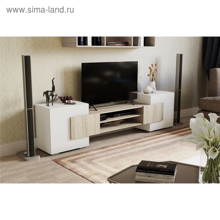 Тумба для ТВ, 2020х355х520, цвет ясень шимо светлый / белый