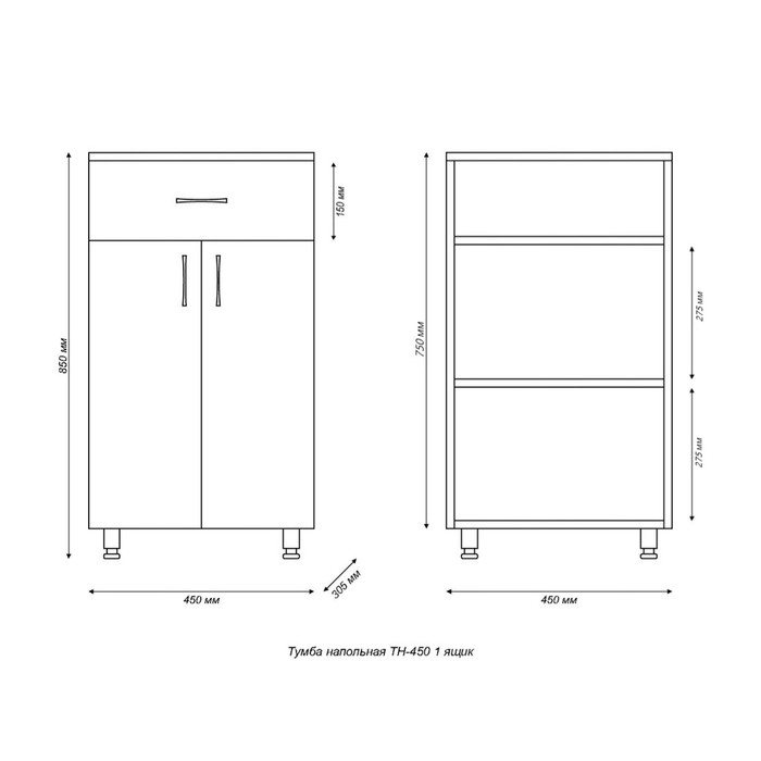Тумба для ванной комнаты "ТН 45", 1 ящик, 85 х 45 х 30,5 см