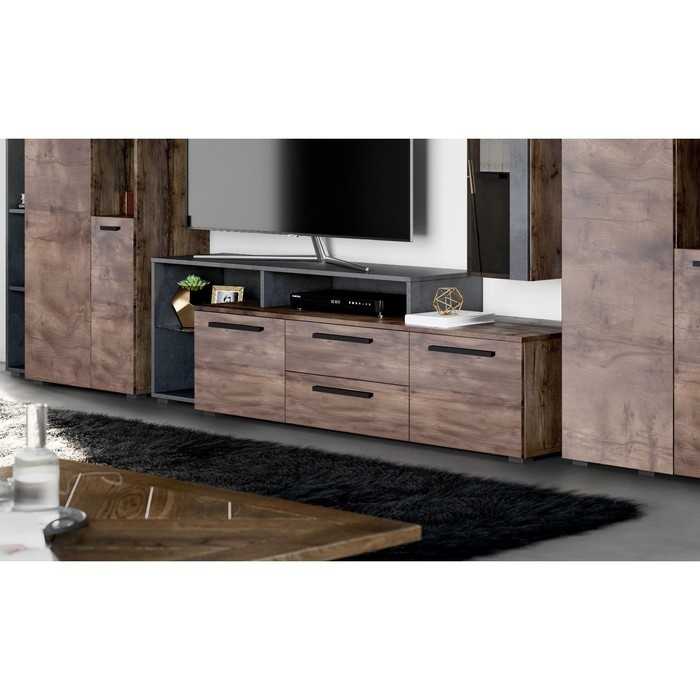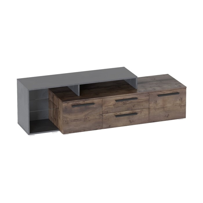 Тумба "Глазго", 1810х485х530, Бруклин/Таксония позволит организовать удобное расположение вашего телевизора и других мультимедийных устройств. Компактный размер и функциональное наполнение тумбы позволяют расходовать ограниченное пространство комнаты максимально эффективно. Тумба оснащена двумя выдвижными ящиками на шариковых направляющих, двумя распашными дверцами и стеклянной полкой. Тумба комплектуется петлями с плавным закрыванием.