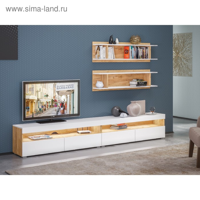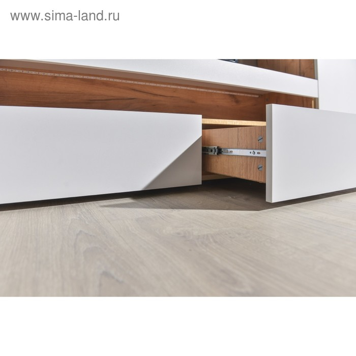 Тумба под ТВ Альба, 1300х361х420, цвет белый премиум / дуб крафт золотой
