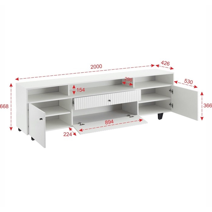 Тумба под ТВ Оливия, 2000х426х668,цвет белый / белый глянец