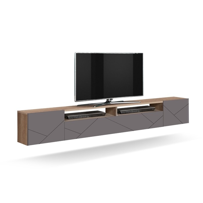 Тумба под ТВ Прага 2130х350х382, цвет дуб каньон / ПВХ софт грей