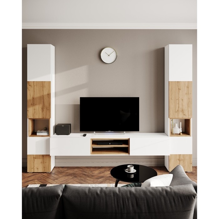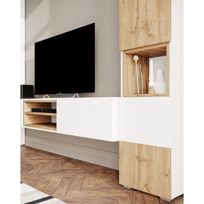 Тумба подвесная Милана, 2000х300х370, Белый/Дуб вотан