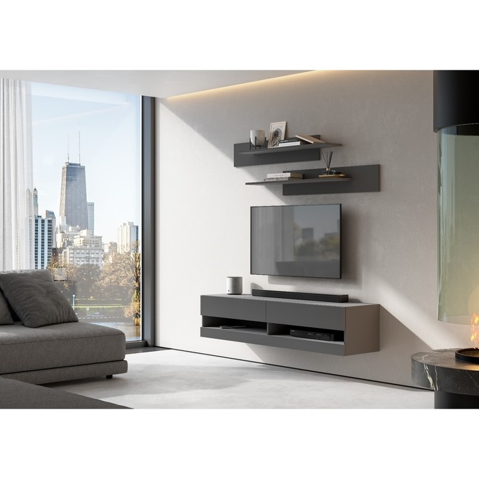 Тумба под ТВ подвесная Инфинити, 2400х330х330, цвет графит/ эйхория, МДФ