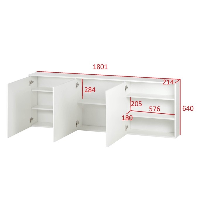 Тумба подвесная под ТВ 4, 1800х640х210, цвет белый