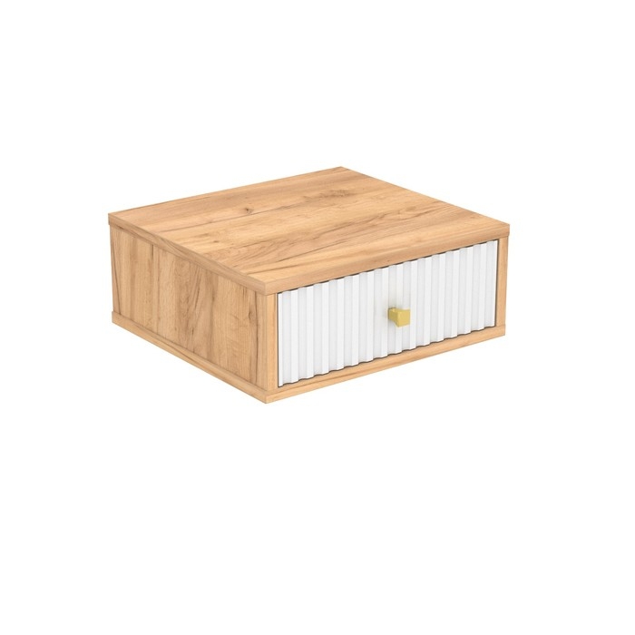 Тумба подвесная "Селин", 380х350х152 1 ящик, Крафт Золотой, Белый глянец, Золото